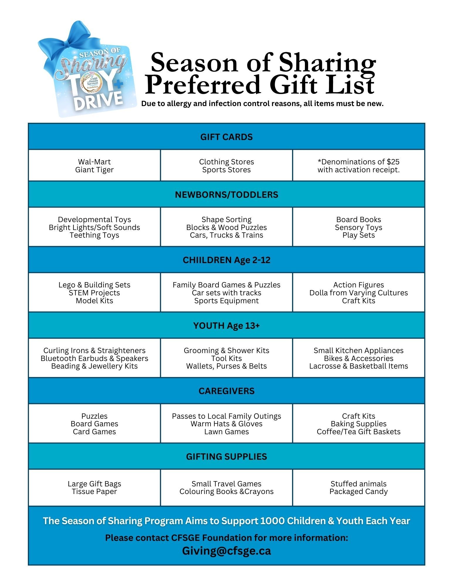 We sincerely appreciate your consideration and support for the Season of Sharing campaign. Your compassion and generosity play a vital role in bringing joy, hope, and a renewed sense of possibility to the children, young people, and families we serve.
